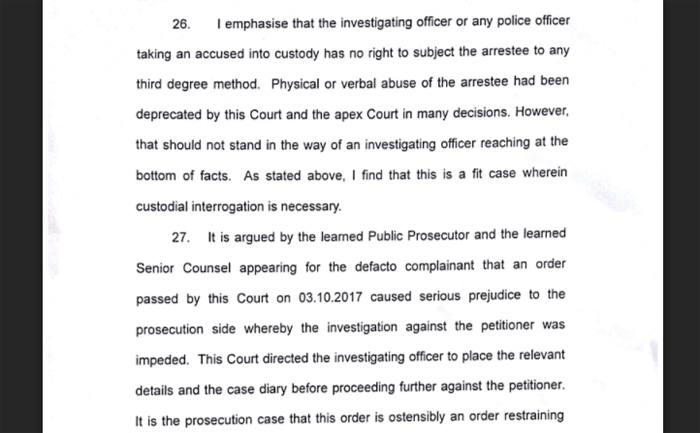 ഇത്തരത്തിൽ നിയമരംഗത്തെ പ്രബലൻ തന്നെ പ്രതിയായ കേസിലെ മുൻകൂർ ജാമ്യാപേക്ഷ വലിയ ചർച്ചയായതിന് പിന്നാലെയാണ് ജാമ്യാപേക്ഷ വ്യക്തമായ കാരണങ്ങൾ ചൂണ്ടിക്കാട്ടി ജസ്റ്റിസ് എ ഹരിപ്രസാദ് തള്ളിയിരിക്കുന്നത്. മുൻകൂർ ജാമ്യം എന്തുകൊണ്ട് പരിഗണിച്ചുകൂടാ എന്ന് വ്യക്തമാക്കാൻ മഹാരാഷ്ട്ര സ്റ്റേറ്റും സിദ്ധറാം സത്ലിംഗപ്പയും തമ്മിലുണ്ടായെ കേസ് ഉൾപ്പെടെ ഉദ്ധരിച്ചുകൊണ്ടാണ് 21 പേജുള്ള ഉത്തരവ്. കേസുമായി ബന്ധപ്പെട്ട് പൊലീസ് സമർപ്പിച്ച തെളിവുകളിലും കേസ് ഡയറിയിലും ഉദയഭാനുവിന് എതിരായ കാര്യങ്ങളെല്ലാം ഒന്നൊന്നായി ചൂണ്ടിക്കാട്ടിയിട്ടുമുണ്ട് വിധിന്യായത്തിൽ.