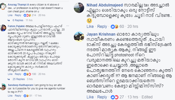 20 ലക്ഷം രൂപ നികുതി വെട്ടിച്ച് ആരും അറിയാതെ ജീവിക്കുമ്പോൾ ഇങ്ങനെ കണ്ടുപിടിച്ച് നാണംകെടുത്തുന്നത് എന്തൊരു കഷ്ടമാണ് എന്ന് മറ്റൊരു കമന്റും
