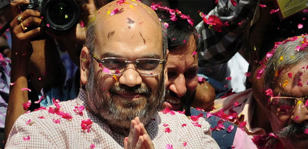 ഗുജറാത്തിൽ മോദിയുടെ വലംകൈയായിനിന്ന അമിത് ഷാ വ്യാജ ഏറ്റുമുട്ടൽ കൊലപാതക കേസ്സുകളെത്തുടർന്നാണ് സംസ്ഥാനം വിട്ടത്. എന്നാൽ, ഗുജറാത്തിൽനിന്ന് വിട്ടുനിന്ന അമിത് ഷാ, രാജ്യം മുഴുവൻ കാവിവൽക്കരിക്കാനുള്ള ദൗത്യം ഏറ്റെടുക്കുകയായിരുന്നു. അതിൽ അദ്ദേഹം വിജയിക്കുകയും ചെയ്തു. 1997 മുതൽ 2012 വരെ സർഖെഞ്ജിൽനിന്നുള്ള നിയമസഭാംഗമായിരുന്ന അമിത് ഷാ ഗുജറാത്തിൽ ആഭ്യന്തരമുൾപ്പെടെയുള്ള വകുപ്പുകൾ കൈകാര്യം ചെയ്തു. വ്യാജ ഏറ്റുമുട്ടൽ കേസ്സ് ഉയർന്നുവന്നതിനെത്തുടർന്ന് രാജിവെക്കുകയും അറസ്റ്റിലാവുകയും ചെയ്തു. ഗുജറാത്തിൽ താമസിക്കില്ലെന്ന ഉപാധിയോടെ ജാമ്യം നേടിയ ഷാ, രാജ്യം മുഴുവൻ ബിജെപിയുടെ സ്വാധീനം ശക്തമാക്കുകയെന്ന ദൗത്യത്തോടെ തന്റെ അശ്വമേഥമാരംഭിച്ചു.