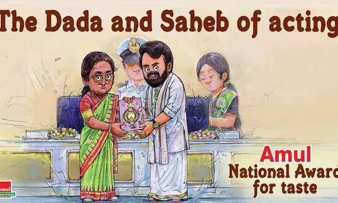 'അഭിനയത്തിന്റെ ദാദയും സാഹിബുമായ മോഹൻലാലിന്..'; ഇന്ത്യൻ സിനിമയുടെ പരമോന്നത പുരസ്കാരം നേടിയ മോഹൻലാലിന് ആശംസ നേർന്ന് അമുൽ; വൈറലായി പോസ്റ്റർ