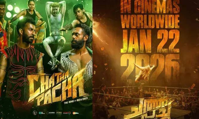 കൊച്ചി: റസ്ലിങ് പശ്ചാത്തലമാക്കി ഒരുങ്ങുന്ന ആക്ഷൻ എന്റർടെയിനർ ചിത്രം ‘ചത്താ പച്ച’ 2026 ജനുവരി 22 ന് തിയറ്ററുകളിൽ എത്തും. നവാഗതനായ അദ്വൈത് നായർ സംവിധാനം ചെയ്യുന്ന ഈ ചിത്രത്തിൽ മെഗാസ്റ്റാർ മമ്മൂട്ടി കാമിയോ റോളിലെത്തുമെന്നാണ് സൂചനകൾ. മലയാളത്തിൽ ആദ്യമായി ശങ്കർ–എഹ്സാൻ–ലോയ് സംഗീതം ഒരുക്കുന്നു എന്ന പ്രത്യേകതയും ചിത്രത്തിനുണ്ട്. ചിത്രത്തിന്റെ റിലീസ് പോസ്റ്റർ അണിയറപ്രവർത്തകർ പുറത്തുവിട്ടു.