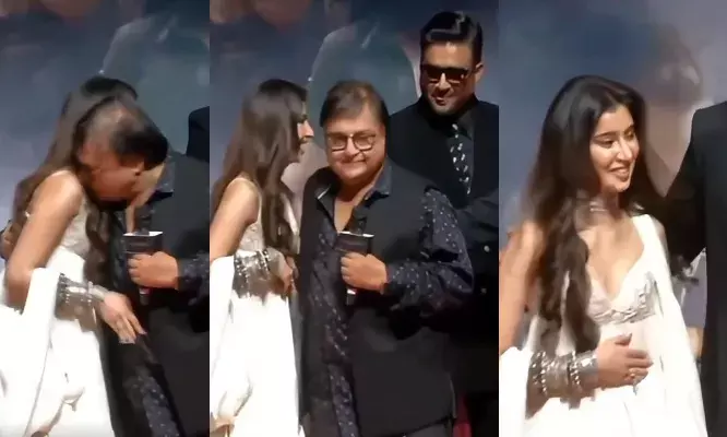 തന്റെ പേര് വിളിച്ചതും നിറഞ്ഞ പുഞ്ചിരിയോടെ വേദിയിലേക്ക് ഓടിയെത്തിയ നടി; പെട്ടെന്ന് തൊട്ട് അടുത്ത് നിന്ന നടന്റെ അതിരുവിട്ട പ്രവർത്തി; കെട്ടിപ്പിടിച്ച് തോളിൽ ചുംബിച്ചതോടെ വിവാദം