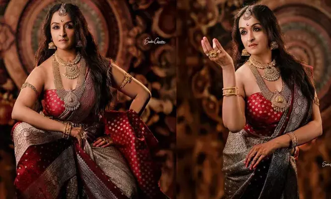 കൊച്ചി: കന്നഡ സൂപ്പർഹിറ്റ് ചിത്രം 'കാന്താര'യിലെ രാജകുമാരി കനകാവതിയുടെ വേഷത്തിൽ നടിയും-നർത്തകിയുമായ ശാലു മേനോൻ പങ്കുവെച്ച ചിത്രങ്ങൾ സമൂഹ മാധ്യമങ്ങളിൽ വൈറൽ. ചിത്രത്തിൽ രുക്മിണി വസന്ത് അവതരിപ്പിച്ച ഈ കഥാപാത്രം ഏറെ പ്രശംസ നേടിയിരുന്നു. ഇതിനെ പുനരവതരിപ്പിച്ചുകൊണ്ടുള്ള ശാലു മേനോന്റെ പുതിയ ഫോട്ടോഷൂട്ട് ചിത്രങ്ങൾ ആരാധകർ ഏറ്റെടുത്തിരിക്കുകയാണ്.