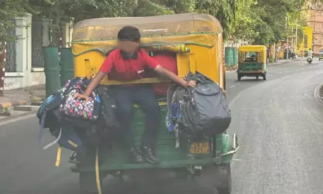 'ഇവിടെ വിദ്യാർത്ഥികൾ ഇപ്പോഴും ഇങ്ങനെയാണ് സ്കൂളിൽ പോകുന്നത്'; തിങ്ങിനിറഞ്ഞ ഓട്ടോറിക്ഷയുടെ പുറകിൽ വിദ്യാർത്ഥിയുടെ അപകടയാത്ര; വീഡിയോ വൈറലായതോടെ നടപടിയ്ക്കൊരുങ്ങി അധികൃതർ