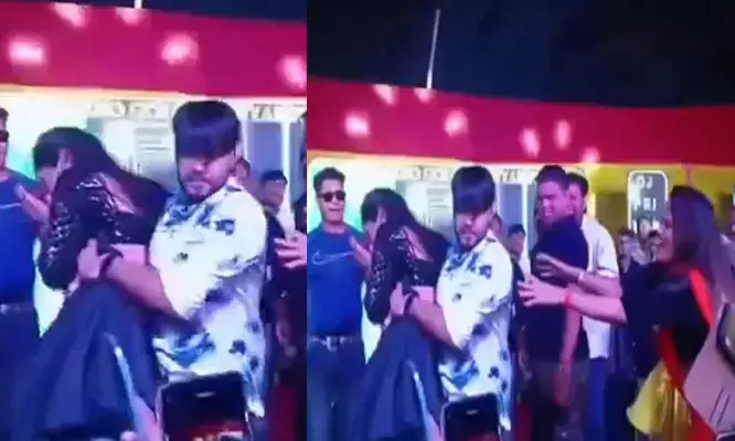 സ്റ്റേജിൽ ഗായകനൊപ്പം നൃത്തം ചെയ്യുകയായിരുന്നു യുവതി. പാട്ടിനിടെ ആവേശം മൂത്ത ഗായകൻ പെട്ടെന്ന് നർത്തകിയുടെ കൈകളിൽ പിടിക്കുകയും ബലം പ്രയോഗിച്ച് സ്റ്റേജിന് മുന്നിലിരുന്ന കാണികൾക്കിടയിലേക്ക് വലിച്ചെറിയുകയുമായിരുന്നു. അപ്രതീക്ഷിതമായ ഈ നീക്കത്തിൽ യുവതി നിലതെറ്റി കാണികൾക്ക് മേൽ വീണു. ഇതിന്റെ വീഡിയോ ദൃശ്യങ്ങൾ സോഷ്യൽ മീഡിയയിൽ പ്രചരിച്ചതോടെയാണ് സംഭവം വിവാദമായത്.