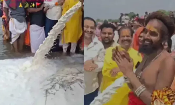 A video showing nearly 11,000 litres of milk being poured into the Narmada River in Madhya Pradesh has gone viral, sparking a debate over faith, environment and public welfare.