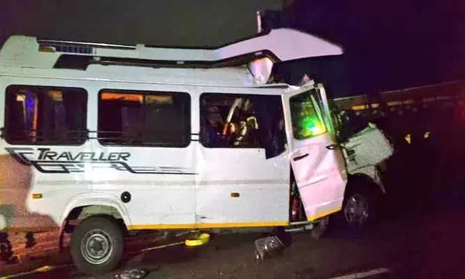 നിർത്തിയിട്ടിരുന്ന ട്രക്കിൽ ട്രാവലർ ഇടിച്ചു കയറി, 15 മരണം