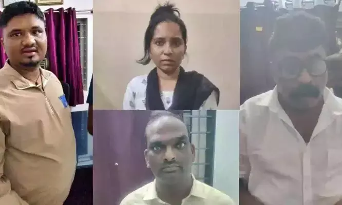 സ്വകാര്യ ആശുപത്രിയിലെ സ്റ്റാഫ് നഴ്സായ 27കാരി സുഷ്മിത, കൂട്ടാളികളായ കൃഷ്ണ, രാഹുല്, ചന്നബസപ്പ എന്നിവരെയാണ് വ്യവസായിയുടെ പരാതിയില് വിദ്യാനഗര് പൊലീസ് അറസ്റ്റ് ചെയ്തത്. സുഷ്മിതയ്ക്കൊപ്പമുള്ള സ്വകാര്യ ദൃശ്യങ്ങള് സാമൂഹിക മാധ്യമങ്ങളിലൂടെ പങ്കുവെക്കുമെന്നും മാധ്യമങ്ങള്ക്ക് കൈമാറുമെന്നുമായിരുന്നു ഭീഷണി. വീഡിയോ പുറത്തുവിടാതിരിക്കാന് 25 ലക്ഷം രൂപയാണ് ദേവനാഗരിയിലെ സിദ്ധവീരപ്പ ലേഔട്ടില് താമസിക്കുന്ന വ്യവസായിയില് നിന്ന് സംഘം ആവശ്യപ്പെട്ടത്.