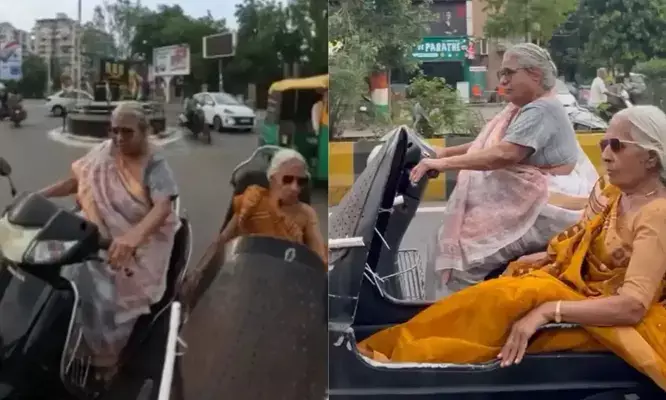 നഗരത്തിലൂടെ പറക്കുന്ന രണ്ടുപേരെ കണ്ട് കൗതുകം; വാർദ്ധക്യത്തിന്റെ ഊന്നുവടി പിടിക്കാതെ ഒരു യാത്ര; പ്രായം ഒന്നിനും തടസ്സമല്ലാതാകുന്ന കാഴ്ച; സോഷ്യൽ മീഡിയയിൽ വൈറലായി ഈ സഹോദരിമാർ