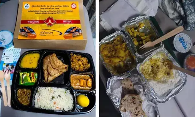 ഉദയ് ചാറ്റര്ജി എന്നയാളാണ് രണ്ട് ഭക്ഷണങ്ങളുടേയും ചിത്രങ്ങള് സഹിതം ഇക്കാര്യം എക്സില് പോസ്റ്റ് ചെയ്തത്. ഫ്ളാഗ് ഓഫ് ദിവസത്തെ ഭക്ഷണം പ്ലാസ്റ്റിക് പാത്രത്തിലാണ് നല്കിയത്. ചോറ്, പറാത്ത, പനീറിന്റെ ഒരു വിഭവം, പച്ചക്കറി, ദാല്, മധുരവിഭവം, അച്ചാര് എന്നിവയാണ് ഇതിലുണ്ടായിരുന്നത്. ഒപ്പം തൈരും ഉണ്ടായിരുന്നു. എന്നാല് വന്ദേഭാരത് സ്ലീപ്പറില് ഇപ്പോള് ഭക്ഷണം നല്കുന്നത് അലൂമിനിയം കണ്ടെയിനറിലാണ്. ഇതിനോടകം നിരവധി പേരാണ് ഇന്ത്യന് റെയില്വേ കാറ്ററിങ് ആന്ഡ് ടൂറിസം കോര്പ്പറേഷന്റെ (ഐആര്സിടിസി) മോശം സമീപനത്തിനെതിരെ രംഗത്തു വന്നത്. സമാനമായ അനുഭവങ്ങള് പലരും സമൂഹ മാധ്യമങ്ങളില് പങ്കുവെച്ചു.