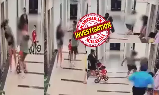 കറുത്ത ടിഷർട്ട് ധരിച്ച യുവതിയെ പിടിച്ചുനിർത്തുന്ന ഒരാൾ; അവരുടെ നടുവിലായി സൈക്കിളിൽ വരുന്ന കുഞ്ഞും; കുറച്ച് നേരം സംസാരിച്ച് നിന്നതും അതിരുവിട്ട പ്രവർത്തി; മുഷ്ടി ചുരുട്ടി മുഖത്ത് ഇടി; കലി തീരാതെ മുടിയോടെ പിടിച്ചുവലിച്ച് കാൽ മടക്കി തൊഴി; സെക്യൂരിറ്റി ഇടപെട്ടിട്ടും വിട്ടില്ല; ഒടുവിൽ സത്യാവസ്ഥ അറിഞ്ഞപ്പോൾ സംഭവിച്ചത്