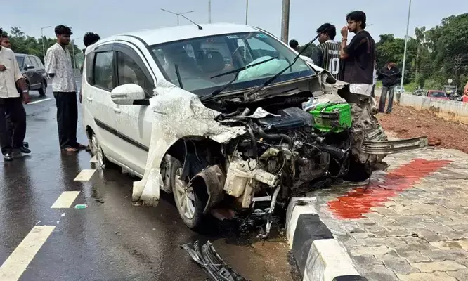 ആറുവരിപ്പാതയില് കാലിക്കറ്റ് സര്വകലാശാലയ്ക്ക് സമീപം കോഹിനൂരിലാണ് അപകടം.. മഹാരാഷ്ട്ര രജിസ്ട്രേഷനുള്ള ലോറി റോഡരികിൽ നിർത്തിയിട്ടിരിക്കുകയായിരുന്നു. ഈ ലോറിയുടെ വശത്തേക്കാണ് കുടുംബം സഞ്ചരിച്ച കാർ ഇടിച്ചു കയറിയത്. തുടർന്ന് കാർ സമീപത്തെ ഡിവൈഡറിൽ ഇടിച്ച് നിന്നു. അപകടസമയത്ത് പ്രദേശത്ത് നേരിയ മഴയുണ്ടായിരുന്നു. കാറിന്റെ മുൻഭാഗം പൂർണ്ണമായും തകർന്നു.