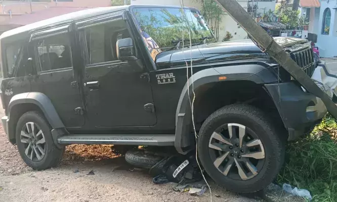 നിയന്ത്രണം വിട്ട ഥാർ ജീപ്പ് ഇടിച്ച് സ്കൂട്ടർ യാത്രക്കാരനും വിദ്യാർഥിക്കും പരിക്ക്; സംഭവം തിരുവനന്തപുരത്ത്