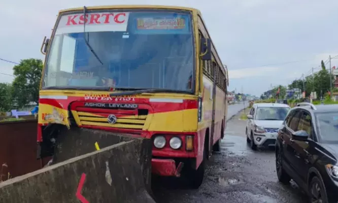 കെഎസ്ആർടിസി സൂപ്പർ ഫാസ്റ്റ് ഡിവൈഡറിലേക്ക് ഇടിച്ച് കയറി അപകടം ; മൂന്ന് യാത്രക്കാർക്ക് പരിക്ക്; സംഭവം അമ്പലപ്പുഴയിൽ