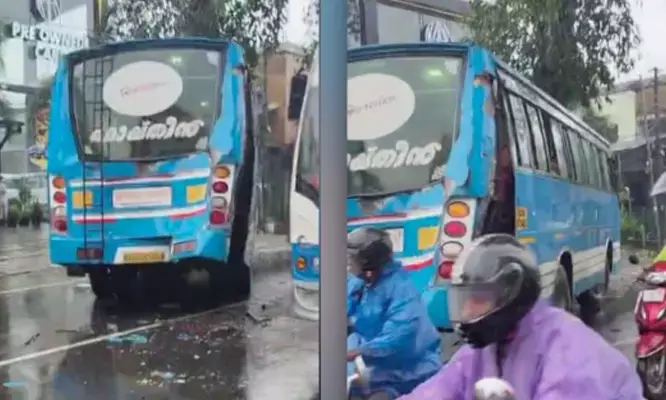 എതിരെ വന്ന ബസിൽ തട്ടി അപകടം; നിയന്ത്രണം വിട്ട സ്വകാര്യ ബസ് മരത്തിൽ ഇടിച്ചുകയറി; ഉഗ്ര ശബ്ദം കേട്ട് ആളുകൾ ഓടിയെത്തി; നിരവധി യാത്രക്കാർക്ക് പരിക്ക്