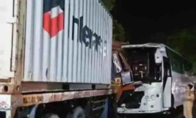 കൊയിലാണ്ടി: തെരഞ്ഞെടുപ്പ് ഡ്യൂട്ടി കഴിഞ്ഞ് മടങ്ങിയ പോലീസ് ഉദ്യോഗസ്ഥർ സഞ്ചരിച്ച ബസ് കണ്ടെയ്നർ ലോറിയുമായി കൂട്ടിയിടിച്ച് 28 പേർക്ക് പരിക്ക്. ശനിയാഴ്ച പുലർച്ചെ കൊയിലാണ്ടിക്ക് സമീപം ദേശീയപാതയിലാണ് അപകടം നടന്നത്. പരിക്കേറ്റവരെ ഉടൻ തന്നെ സമീപത്തെ ആശുപത്രികളിൽ പ്രവേശിപ്പിച്ചു.