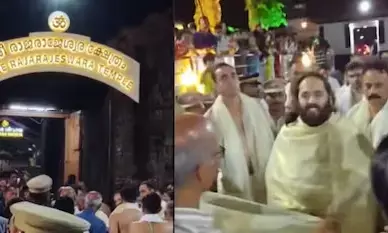 തളിപ്പറമ്പ് രാജരാജേശ്വര ക്ഷേത്രത്തില് പൊന്നിന്കുടം സമര്പ്പിച്ച് അനന്ത് അംബാനി