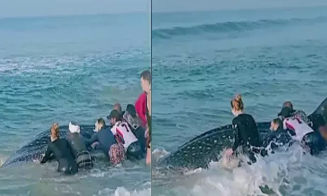 അസാധാരണ തൂക്കം കാരണം വല വരെ പൊട്ടി; ഒന്ന് നീങ്ങി മണലിൽ പൂഴ്ന്ന് പോയതും പൊല്ലാപ്പ്; കരയ്ക്കടിഞ്ഞ ജീവനുള്ള കൂറ്റൻ തിമിംഗലത്തെ രക്ഷപ്പെടുത്തി നാട്ടുകാർ