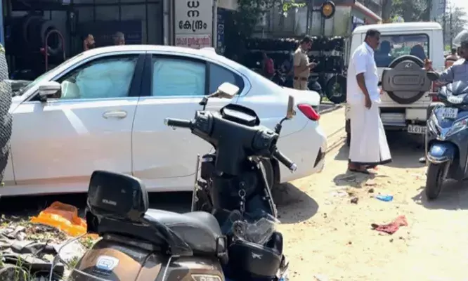 നിയന്ത്രണം വിട്ട് പാഞ്ഞെത്തിയ ബിഎംഡബ്ല്യു കാർ; ഞൊടിയിടയിൽ ഒരു സ്കൂട്ടറിലും ഓട്ടോയിലും ഇടിച്ചുകയറി; അപകടത്തിൽ ഒരാളുടെ കാലൊടിഞ്ഞു; ആശുപത്രിയിൽ പ്രവേശിപ്പിച്ചു