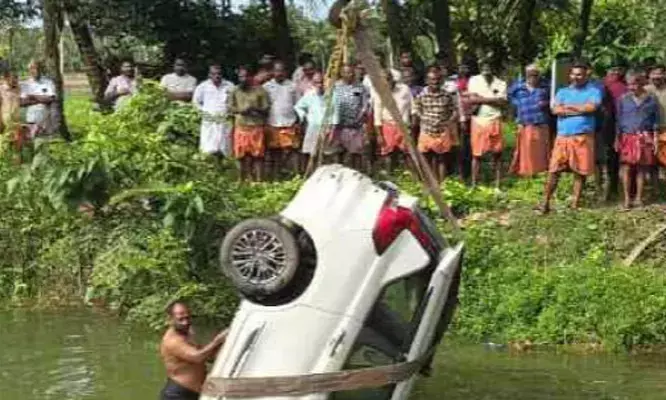 കാറിന്റെ നിയന്ത്രണം മുഴുവൻ നഷ്ടപ്പെട്ട് നേരെ വീണത് കുളത്തിലേക്ക് ; ഡ്രൈവര് അത്ഭുതകരമായി രക്ഷപ്പെട്ടു; സംഭവം ചെമ്പുചിറയില്