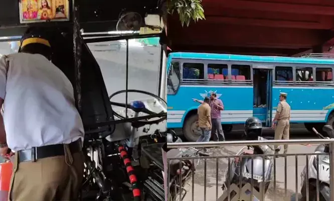 ഓടിക്കൊണ്ടിരുന്ന ബസിൽ നിന്ന് തീയും പുകയും; ട്രാഫിക് പൊലീസിന്റെ സമയോചിത ഇടപെടലിൽ ഒഴിവായത് വൻ അപകടം