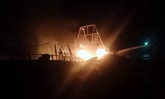 സാങ്കേതിക തകരാറിനെ തുടർന്ന് കരക്കെത്തിച്ചു; പിന്നാലെ മത്സ്യബന്ധന ബോട്ടിന് തീപിടിച്ചു