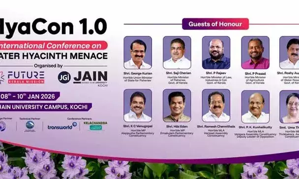 ഹയാക്കോണ് 1.0: കുളവാഴകള് സൃഷ്ടിക്കുന്ന പാരിസ്ഥിതിക വെല്ലുവിളികള്ക്ക് പരിഹാരം കാണുന്നത് എങ്ങനെ? ഫ്യൂച്ചര് കേരള മിഷന്റെ രാജ്യാന്തര കുളവാഴ കോണ്ഫറന്സ് ജനുവരി 8 മുതല് കൊച്ചിയില്; കേന്ദ്ര ഫിഷറീസ് സഹമന്ത്രി ജോര്ജ് കുര്യന് ഉദ്ഘാടനം ചെയ്യും