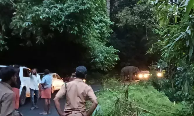 സംഭവത്തെ തുടർന്ന് വാഹനങ്ങളുടെ നീണ്ടനിര രൂപപ്പെട്ടു. അയൽ സംസ്ഥാനങ്ങളിൽ നിന്നുള്ള സഞ്ചാരികളടക്കം നിരവധിപേർ ഇതുവഴി കടന്നുപോയിരുന്നു. വനംവകുപ്പ് ഉദ്യോഗസ്ഥരെത്തി ആനയെ കാട്ടിലേക്ക് തുരത്താൻ ശ്രമിച്ചെങ്കിലും ഫലം കണ്ടില്ല. കനത്ത മഴയും ശ്രമങ്ങൾക്ക് തിരിച്ചടിയായി. രാത്രി എട്ടോടെ ആന വനത്തിലേക്ക് പോയതോടെയാണ് വാഹന ഗതാഗതം പുനരാരംഭിക്കാനായത്.
