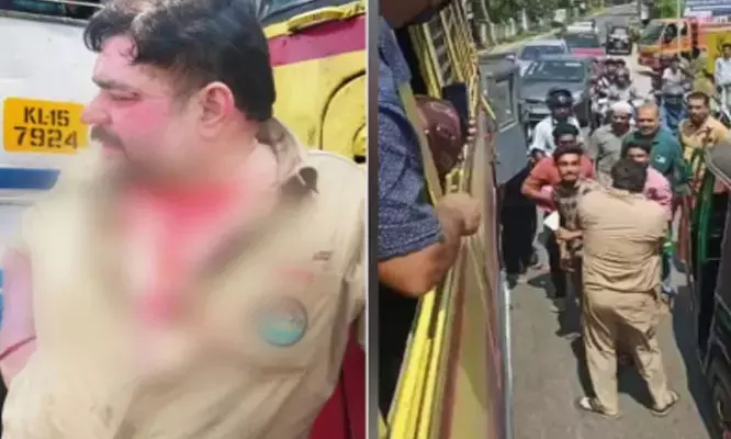 കലി കയറി ഹെൽമറ്റ് കൊണ്ട് അടിച്ചു; പിന്നെ ഒന്നും നോക്കാതെ തല്ലിച്ചതച്ച് ക്രൂരത; ഓവര്ടേക്കിനെ ചൊല്ലി തര്ക്കം; നടുറോഡിൽ കെഎസ്ആര്ടിസി ഡ്രൈവറെയും കണ്ടക്ടറെയും മര്ദിച്ച് അവശനാക്കി
