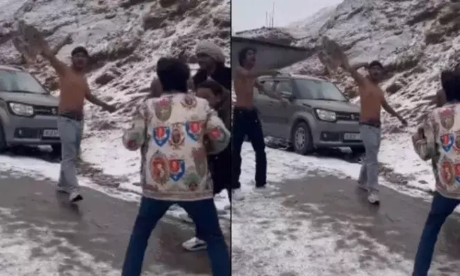 ഷിംല: ഹിമാചൽ പ്രദേശിലെ മഞ്ഞുമൂടിയ റോഡിൽ ഷർട്ടഴിച്ചും മദ്യവും ഹുക്കയും ഉപയോഗിച്ച് യുവാക്കൾ നൃത്തം ചെയ്യുന്ന വീഡിയോ സമൂഹമാധ്യമങ്ങളിൽ വൈറലായി. വിനോദസഞ്ചാരികളുടെ ഉത്തരവാദിത്തമില്ലാത്ത പെരുമാറ്റം വലിയ വിമർശനങ്ങൾക്ക് വഴിവെച്ചിരിക്കുകയാണ്.