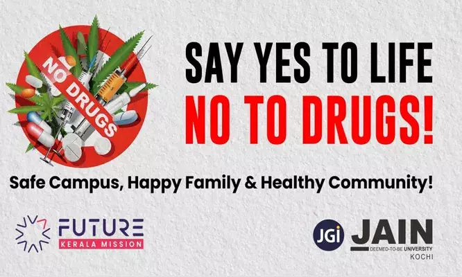 'സേ യേസ് ടു ലൈഫ്, നോ ടു ഡ്രഗ്സ്'; രാജ്യത്ത് ആദ്യമായി പ്രവേശന പ്രക്രിയയില് വിദ്യാര്ത്ഥികള്ക്ക് പ്രതിജ്ഞ നിര്ബന്ധമാക്കി കൊച്ചി ജെയിന് യൂണിവേഴ്സിറ്റി