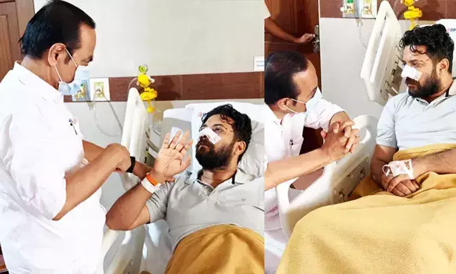 കോഴിക്കോട്: പൊലീസ് അതിക്രമത്തില് പരിക്കേറ്റ് ചികിത്സയില് കഴിയുന്ന ഷാഫി പറമ്പില് എം.പിയെ സന്ദര്ശിച്ച് പ്രതിപക്ഷ നേതാവ് വി.ഡി. സതീശന്. കോഴിക്കോട്ടെ സ്വകാര്യ ആശുപത്രിയിലെത്തി ഷാഫിയെ കണ്ട പ്രതിപക്ഷ നേതാവ് ആരോഗ്യ വിവരങ്ങള് ചോദിച്ചറിഞ്ഞു. ഷാഫി പറമ്പിലിനെ ആക്രമിക്കാന് ഗൂഢാലോചന നടത്തിയ മുതിര്ന്ന ഉദ്യോഗസ്ഥര് ഉള്പ്പെടെയുള്ളവര്ക്കെതിരെ നടപടിയെടുക്കണമെന്ന് മാധ്യമങ്ങളോട് പറഞ്ഞു. പോലീസുകാര് രാജാവിനേക്കാള് വലിയ രാജഭക്തി കാട്ടുകയാണെന്ന് അദ്ദേഹം വിമര്ശിച്ചു.