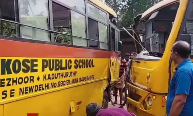 കൂത്താട്ടുകുളത്ത് സ്കൂള് ബസുകള് തമ്മില് കൂട്ടി ഇടിച്ചു; 12 വിദ്യാര്ത്ഥികള്ക്ക് പരിക്കേറ്റു