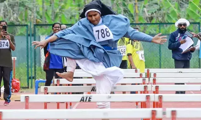 സംസ്ഥാന മാസ്റ്റേഴ്സ് മീറ്റില് ഹര്ഡിലുകള് അതിവേഗം ചാടിക്കടന്ന് സ്വര്ണം നേടിയ സിസ്റ്റര് സബീന; ആശംസ അറിയിച്ച് മന്ത്രി ശിവന്കുട്ടി