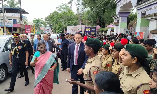 കോട്ടയം പാലാ സെന്റ് തോമസ് കോളേജില് പ്ലാറ്റിനം ജൂബിലി ആഘോഷങ്ങള് ഉദ്ഘാടനം ചെയ്ത ശേഷം വൈകീട്ട് രാഷ്ട്രപതി ഹെലികോപ്റ്റര് മാര്ഗം പാലയില് എത്തും. തുടര്ന്ന് ഹെലികോപ്റ്ററില് കോട്ടയം പൊലീസ് ഗ്രൗണ്ടില് ഇറങ്ങി റോഡ് മാര്ഗം കുമരകത്തേക്ക് പോകും. കുമരകത്താണ് ഇന്ന് തങ്ങുക.
