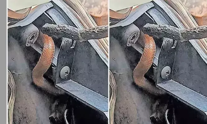 ഓടിക്കൊണ്ടിക്കെ സ്കൂട്ടറിന്റെ ബ്രേക്ക് പിടിച്ചപ്പോള് വിഷപ്പാമ്പ് തലപൊക്കി പുറത്തേക്ക്; യാത്രക്കാരി രക്ഷപ്പെട്ടത് തലനാരിഴക്ക്