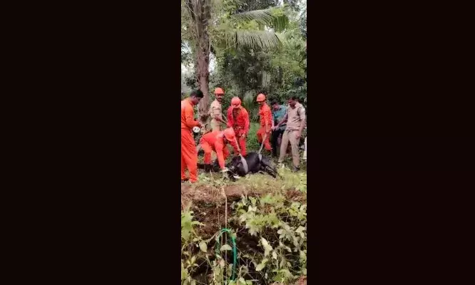 പത്തനംതിട്ട കടമ്മനിട്ടയില് ആള്മറയില്ലാത്ത കിണറ്റില് പശു വീണു; അമ്പതടി താഴ്ചയില് നിന്ന് രക്ഷിച്ച് അഗ്നിരക്ഷാസേന ഉദ്യോഗസ്ഥര്