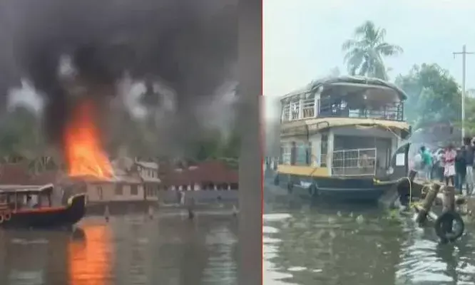 പുന്നമടയില് ഹൗസ്ബോട്ടിന് തീപിടിച്ചു; വിനോദസഞ്ചാരികളെ പുറത്തിറക്കി; തീയണക്കാന് ശ്രമം തുടരുന്നു