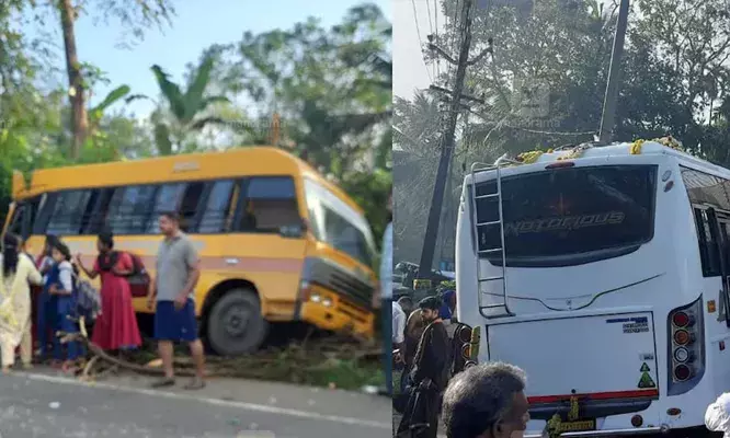 ശബരിമല തീര്ഥാടകര് സഞ്ചരിച്ച ബസ് സ്കൂള് ബസിന് പിന്നിലിടിച്ചു; വിദ്യാര്ത്ഥികള്ക്ക് പരിക്ക്