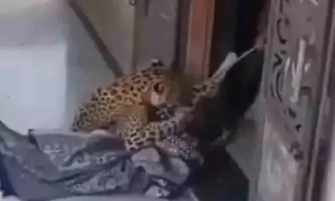 വീട്ടിലെത്തിയ പുലിയെ പിടികൂടി കെട്ടിയിട്ടു; വനംവകുപ്പിനെ വിളിച്ച് കാര്യം അറിയിച്ചു; വീട്ടമ്മയുടെ ധൈര്യം കണ്ട് അന്തംവിട്ട് നാട്ടുകാര്