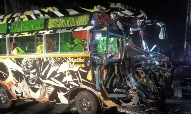ശബരിമല തീര്ഥാടകര് സഞ്ചരിച്ച മിനി ബസ്സില് ചരക്കുലോറിയിടിച്ച് അപകടം; അഞ്ച് അയ്യപ്പ ഭക്തര്ക്ക് പരിക്ക്: ബസ് ഡ്രൈവറുടെ നില ഗുരുതരം