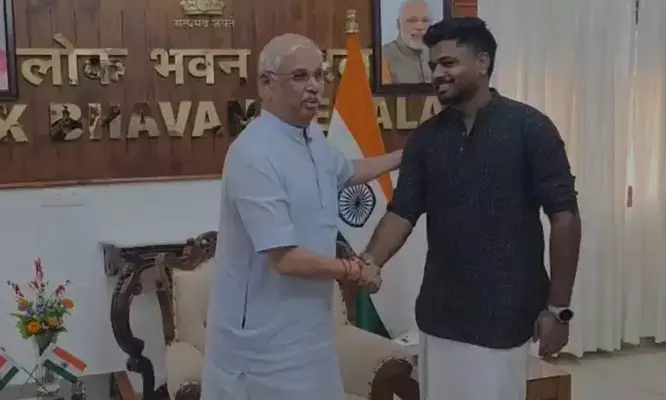 തിരുവനന്തപുരം: ട്വന്റി 20 ലോകകപ്പ് കിരീടനേട്ടത്തിന് പിന്നാലെ മലയാളി ക്രിക്കറ്റ് താരം സഞ്ജു സാംസണിനെ കേരള ഗവര്ണര് രാജേന്ദ്ര വിശ്വനാഥ ആര്ലേക്കര് ആദരിച്ചു. സഞ്ജുവിന്റെ നേട്ടങ്ങളില് രാജ്യം, പ്രത്യേകിച്ച് കേരളം ഏറെ അഭിമാനിക്കുന്നതായി ഗവര്ണര് പറഞ്ഞു. പ്രതിഭയും പരിശ്രമവും കൊണ്ട് ലോകക്രിക്കറ്റില് കേരളത്തിന്റെ പേര് ഉയര്ത്തിപ്പിടിച്ച സഞ്ജു യുവജനങ്ങള്ക്ക് പ്രചോദനമാണെന്ന് അദ്ദേഹം പറഞ്ഞു. പ്രതിസന്ധികളെ ധൈര്യത്തോടെ നേരിട്ട് മുന്നേറുന്ന സഞ്ജുവിന്റെ മനോഭാവം യുവതലമുറയ്ക്ക് വലിയ മാതൃകയാണ്. സമൂഹത്തില് നല്ല മാതൃക സൃഷ്ടിക്കുന്ന സഞ്ജുവിന് വരുംകാലങ്ങളില് ക്രിക്കറ്റില് കൂടുതല് വലിയ നേട്ടങ്ങള് കൈവരിക്കാന് സാധിക്കുമെന്ന് തനിക്ക് വിശ്വാസമുണ്ടെന്നും ഗവര്ണര് കൂട്ടിച്ചേര്ത്തു.