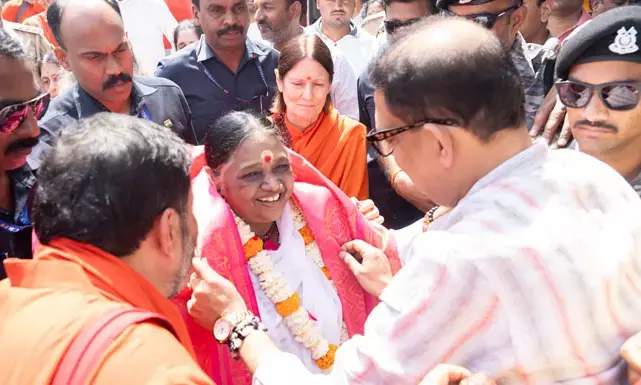 ശ്രീ രാമയന്ത്ര പ്രതിഷ്ഠാ ചടങ്ങ്: അയോധ്യയിലേത്തിയ മാതാ അമൃതാനന്ദമയിയ്ക്ക് ഭക്തിനിര്ഭരമായ സ്വീകരണം