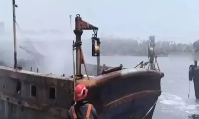കായലില് പൊളിക്കാന് ഇട്ടിരുന്ന ബോട്ടിന് തീപിടിച്ചു; ആളപായമില്ല
