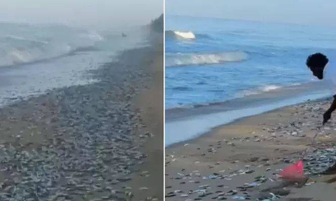 'ചാകര വന്നേ..ഹൂയ്'; രാവിലെ കടൽ തീരത്ത് അത്ഭുത കാഴ്ച; അലയടിച്ചെത്തിയ തിരമാലകളിൽ പെടക്കണ 'മത്തി'യും; വാരിക്കൂട്ടാൻ ഓടിയെത്തി ജനം