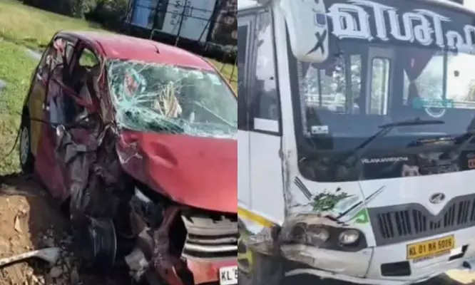 കുന്നംകുളം ഭാഗത്ത് നിന്ന് തൃശൂരിലേക്ക് പോവുകയായിരുന്ന കാറും എതിർ ദിശയിൽ വന്ന സ്കൂൾ ബസ്സും തമ്മിലാണ് കൂട്ടിയിടിച്ചത്. അപകടത്തിൽ രണ്ട് വാഹനങ്ങൾക്കും കേടുപാടുകൾ സംഭവിച്ചു.