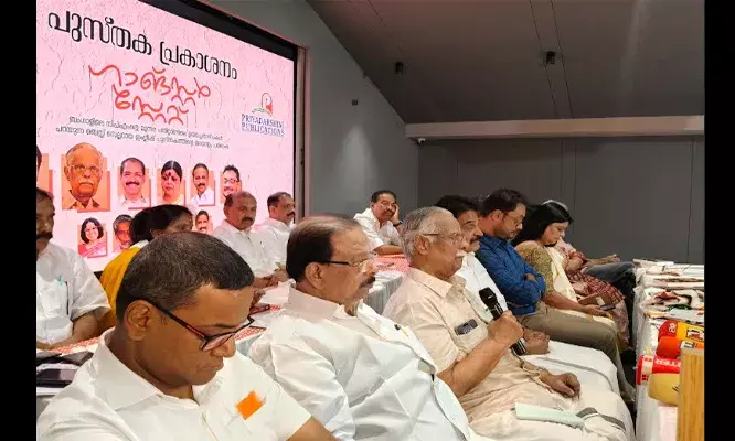 കോണ്ഗ്രസ്പ്രവര്ത്തക സമിതിയംഗം കെ സുധാകരന് എംപി അധ്യക്ഷനായ ചടങ്ങില് കേരളത്തിന്റെ ചുമതലയുള്ളഎ ഐസിസി സെക്രട്ടറി ദീപദാസ് മുന്ഷി, ഗ്രന്ഥകാരന് സൗര്ജ്യ ഭൗമിക്, എഴുത്തുകാരി സുധാമേനോന്, പഴകുളം മധു ഡിസി സി പ്രസിഡന്റ് മാര്ട്ടിന് ജോര്ജ് തുടങ്ങിയവര് സംസാരിച്ചു. എഐ സി സി സെക്രട്ടറി മന്സൂര് അലി ഖാന് രമ്യ ഹരിദാസ്, സജീവ് ജോസഫ് എംഎല്എ ഉള്പ്പടെയുള്ള നേതാക്കള് ചടങ്ങില് സന്നിഹിതരായിരുന്നു. പഴം കുളം മധു സ്വാഗതം പറഞ്ഞു.