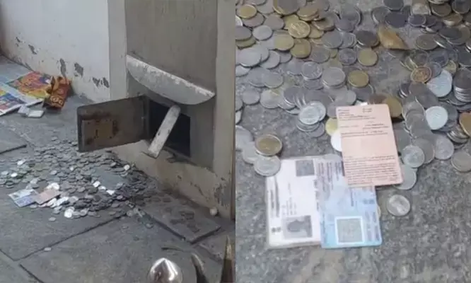 കഴിഞ്ഞ ദിവസം രാത്രി 11.42ഓടെയാണ് മോഷണം നടന്നതെന്നാണ് സിസിടിവി ദൃശ്യങ്ങളിൽ നിന്ന് വ്യക്തമാകുന്നത്. ഭണ്ഡാരത്തിന് സമീപത്തുനിന്ന് ലഭിച്ച രേഖകളിൽ വോട്ടർ ഐഡി കാർഡ്, പാൻ കാർഡ്, ആധാർ കാർഡ് എന്നിവ ഉൾപ്പെടുന്നു. മനോജ് മുർമു എന്ന പേരിലുള്ള കാർഡുകളാണ് ഇവ.