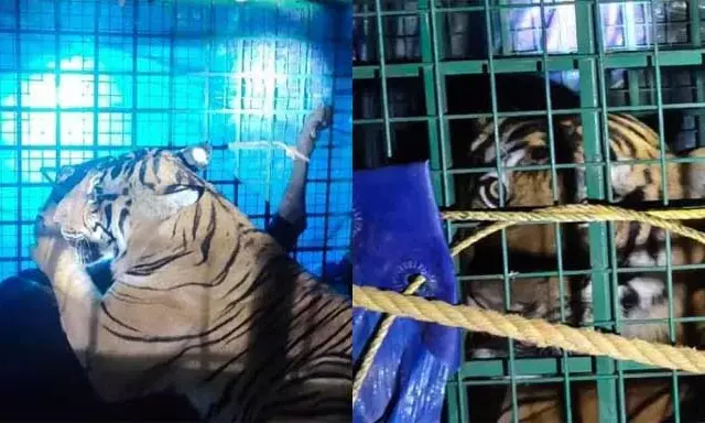 ഇരിട്ടി അയ്യന്കുന്നില് നാല് പശുക്കളെ കടിച്ചു കൊന്ന കടുവ വനം വകുപ്പ് വെച്ച കൂട്ടില് വീണു; കടുവയെ വയനാട് കുപ്പാടി കടുവാ സങ്കേതത്തിലേക്ക് കൊണ്ടുപോയി