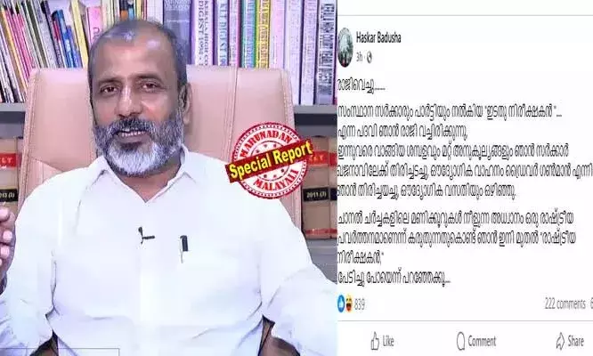 സംസ്ഥാന സര്ക്കാരും പാര്ട്ടിയും നല്കിയ 'ഇടതു നിരീക്ഷകന് '....എന്ന പദവി ഞാന് രാജി വച്ചിരിക്കുന്നു,